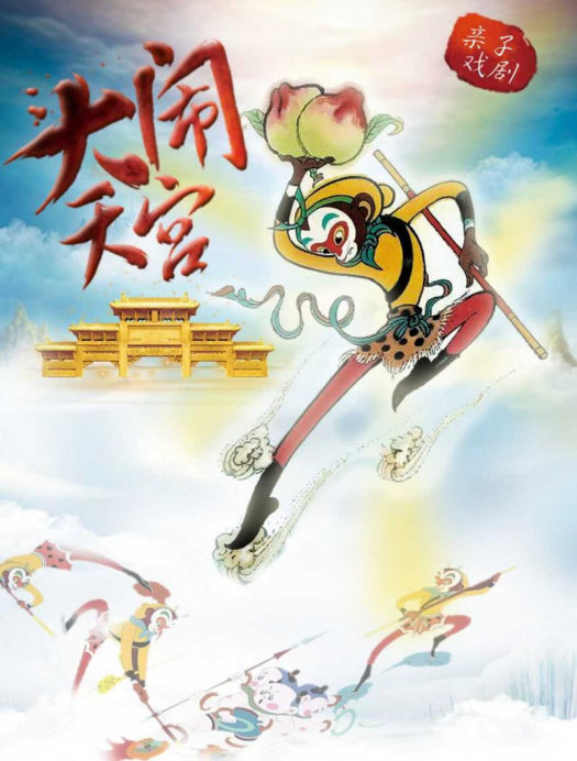孙悟空第一次上天被玉帝封为弼马温,只因为众神仙嘲笑他官职太小一气之下回到花果山,太白金星二次保举封孙悟空为“齐天大圣”,使管桃园。悟空来到蟠桃园,从土地爷口中得知蟠桃宴有很多神仙并未邀请于他,一怒之下,闯进瑶池,偷食酒果;大闹蟠桃会。天宮集中兵力,在李天王率领之下,哪吒为先锋和孙悟空大战,反被孙悟空打败。孙悟空高唱凯歌,胜利回山。