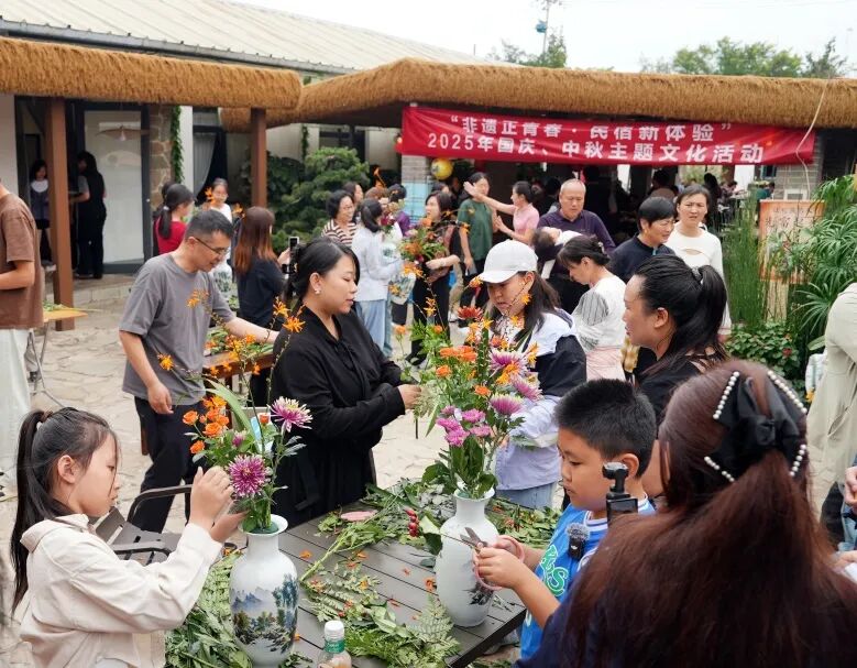 传统文化在沉浸式体验中焕发青春活力,这个“十一”,密云区文化馆以民宿为文化传播载体,将传统非遗技艺与现代休闲生活场景相结合,提升大众对非遗技艺的认知度与喜爱度,同时丰富民宿的文化服务内容,打造“非遗+民宿”特色文旅IP。密云区文化馆馆长王新敏介绍,“我们希望通过活动,让非遗不只是简单‘走进’民宿,而是与双节氛围、游客需求深度契合,真正实现‘活’在当下。”