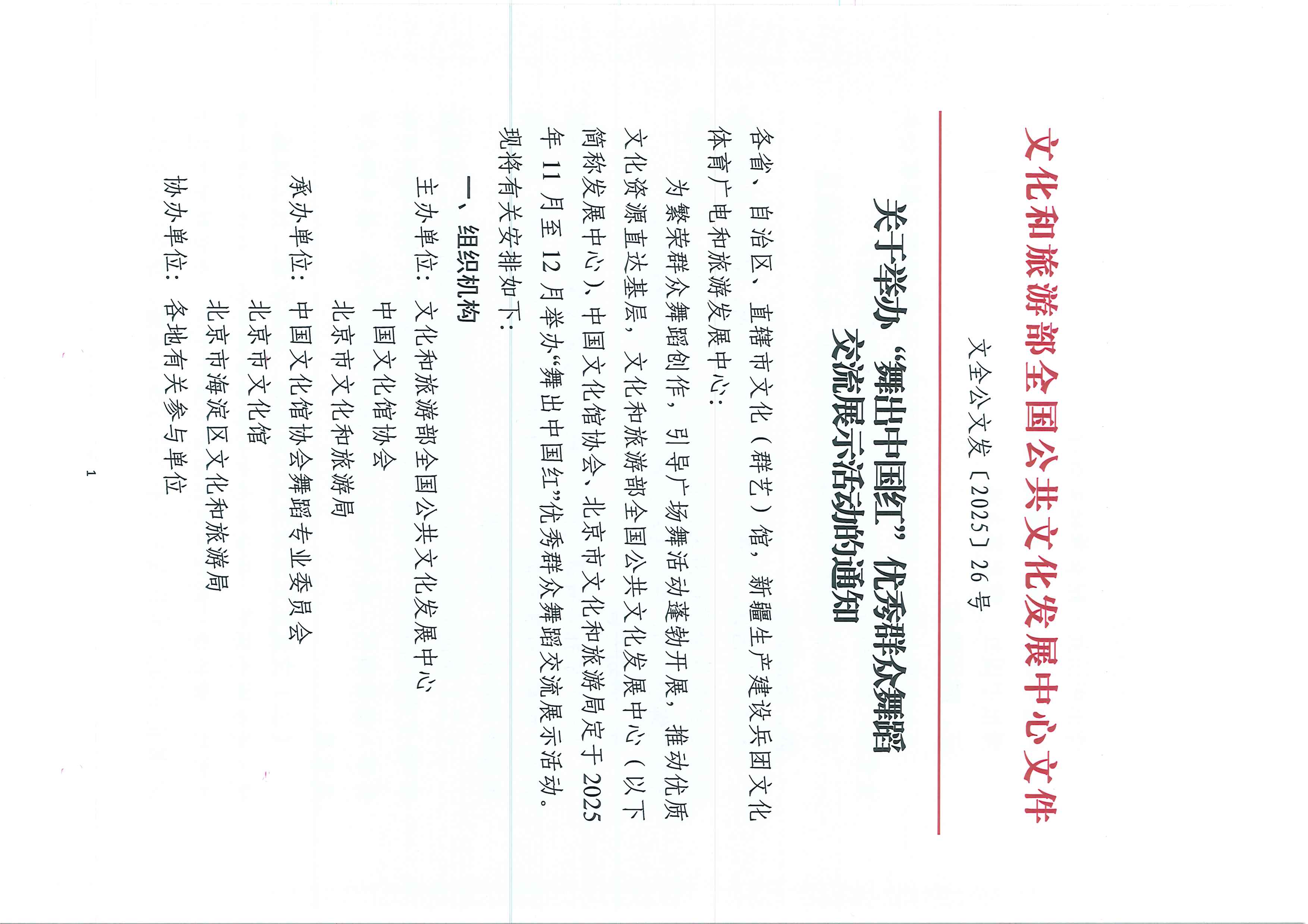 关于举办“舞出中国红”优秀群众舞蹈交流展示活动的通知