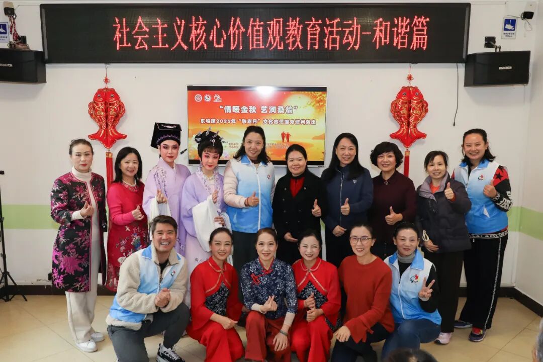 为弘扬中华民族孝亲敬老的传统美德,营造尊老、爱老、助老的良好社会氛围,2025年10月22日上午东城区文化馆(东城区文化志愿者服务分中心)联合东直门街道市民活动中心(分馆)开展了东城区2025年“敬老月”文化志愿服务慰问演出。活动现场,近30位老人欢聚一堂,其中年龄最长者已96岁高龄,大家共同欣赏了由文化志愿者们带来的精彩文艺节目。