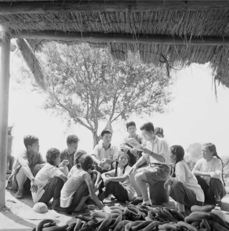 (1955年,石景山区文化馆的工作人员深入田间地头,为农民读报纸、讲时事)