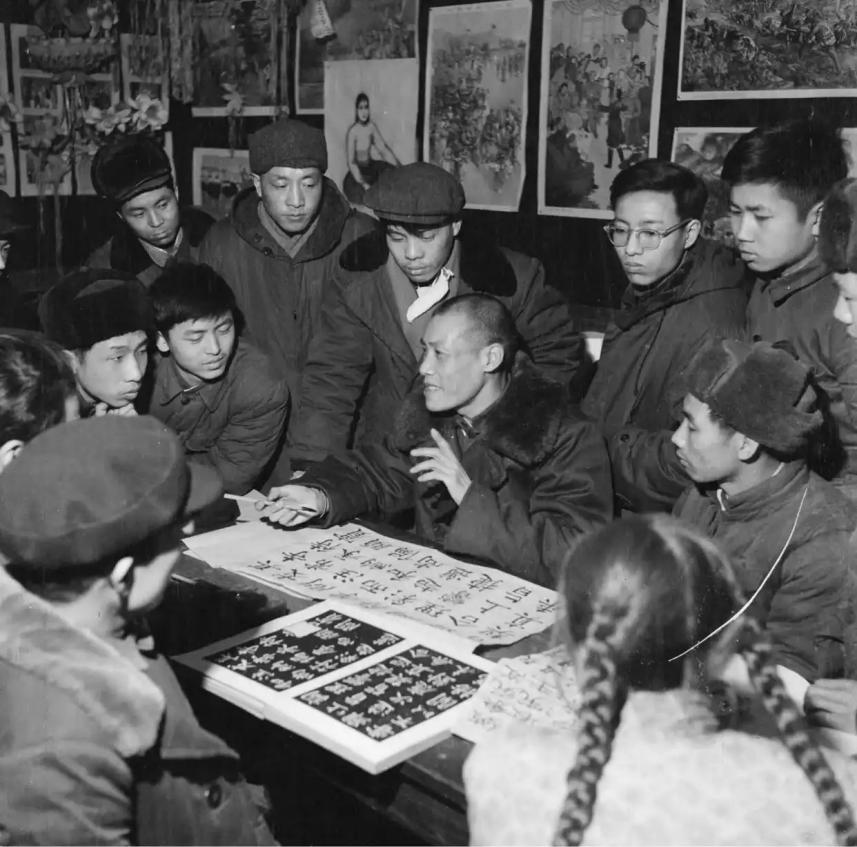 (1962年,宣武区前门文化馆开办业余书法班。图为文化馆老师在给学员讲练毛笔字的基本知识)