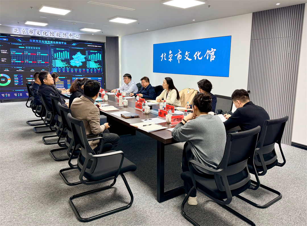 一行人首先参观了北京市文化馆主要功能空间及数据中心,实地实地了解了数字化建设、群众文化活动开展、艺术培训教学以及场馆综合运营等情况,并就文化空间利用、科技与公共文化融合等话题进行了交流。