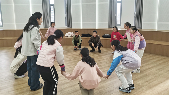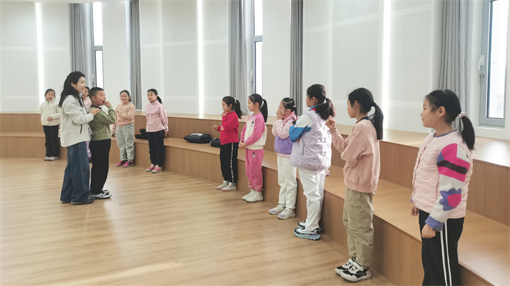 国风声乐传习班:北京市文化馆业务骨干段蕊老师以沉浸式教学为核心,将气息训练融入趣味互动,帮助孩子们掌握科学的演唱方法,为学习国风作品《玉盘》打下基础。
