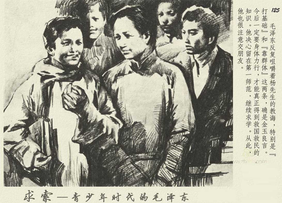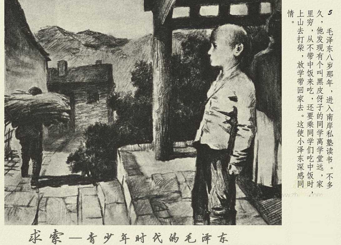 连环画《求索——青少年时代的毛泽东》讲述了毛泽东从韶山冲走出,于私塾、学堂苦学求知,在日耕夜读与动荡时世中执着探寻救国真理的故事。