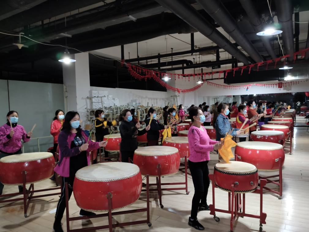 刚步入地下一层,就被阵阵铿锵有力的鼓声吸引。这里是专为大鼓训练打造的空间,每天都有热爱传统艺术的市民在此排练。每一次击鼓,都是对非遗文化的传承与致敬。
