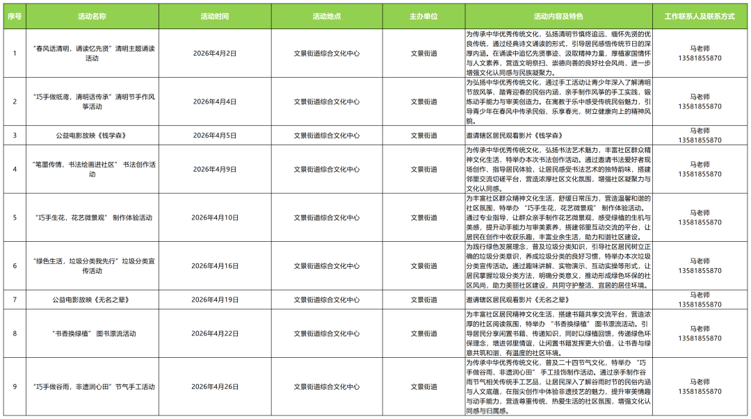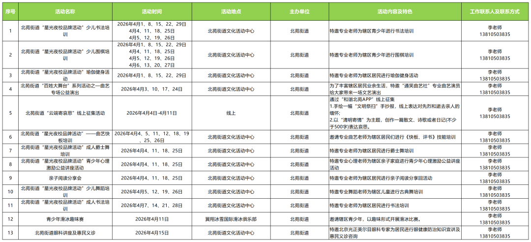 通州区文化馆分馆四月活动一览