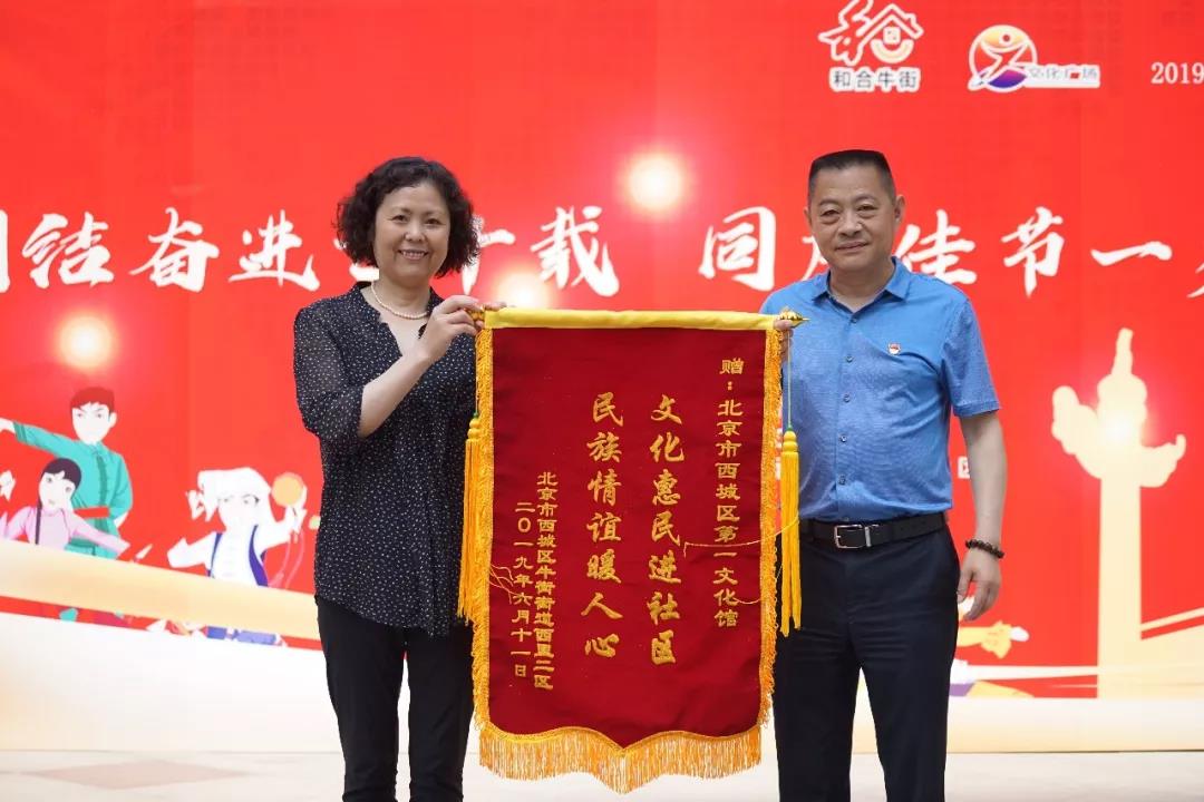 活动现场,西城区第一文化馆的领导将“室外文化广场”的铭牌交到西里二社区领导手中,并表示,双方将进一步加强协作,努力搭建服务百姓的文化平台,为促进民族团结事业的发展贡献力量。与此同时,为了表达对西城区第一文化馆的感谢,牛街西里二社区的领导代表社区居民为西城区第一文化馆赠送锦旗,希望西城区第一文化馆能借助这块平台,为社区百姓带来更多、更好、更精彩的文化演出。