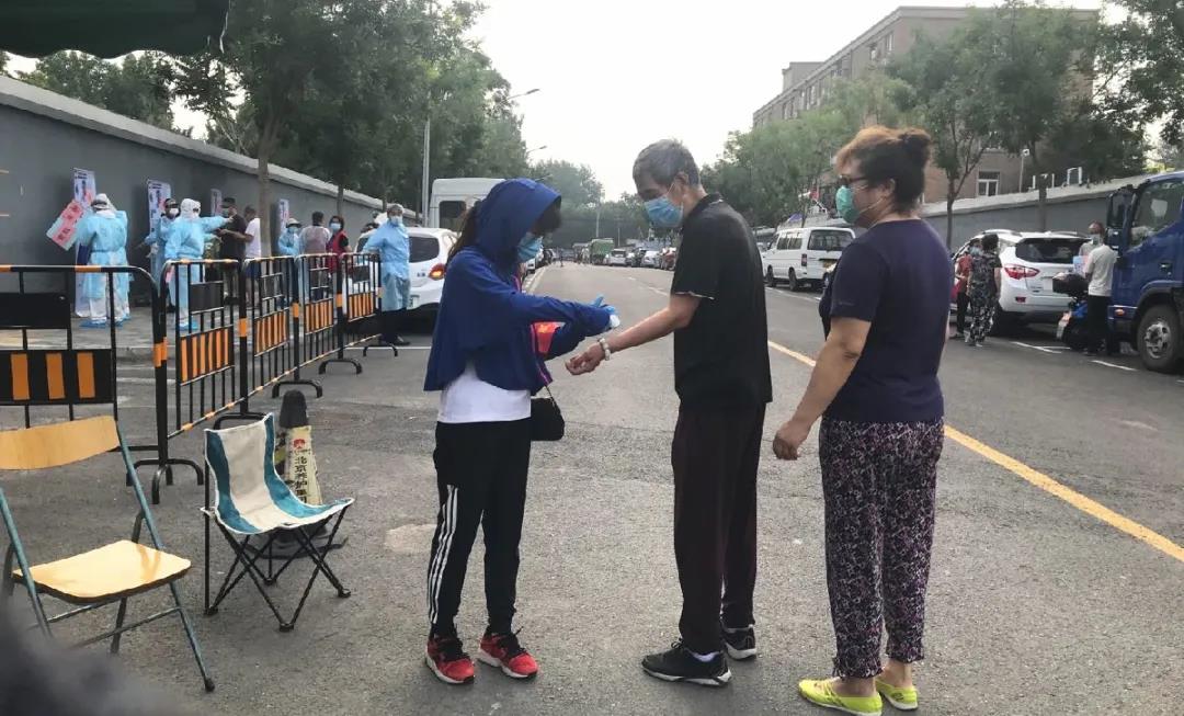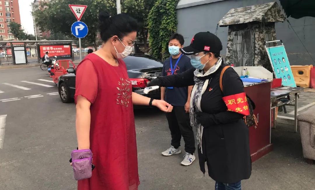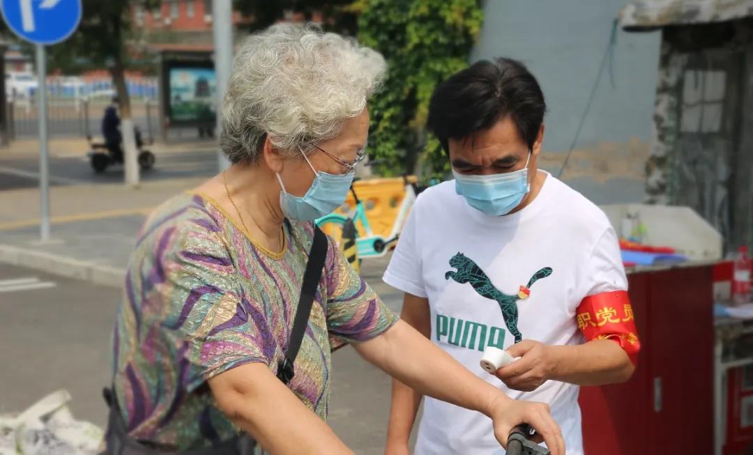 我支部根据社区的安排,8名党员和1名入党积极分子分为四组,带上红袖标,全天在龙爪槐胡同与菜市口大街交叉口协助社区工作者检查人员的出入证、测温、查验健康宝、登记返京人员和进出站点无出入证人员。