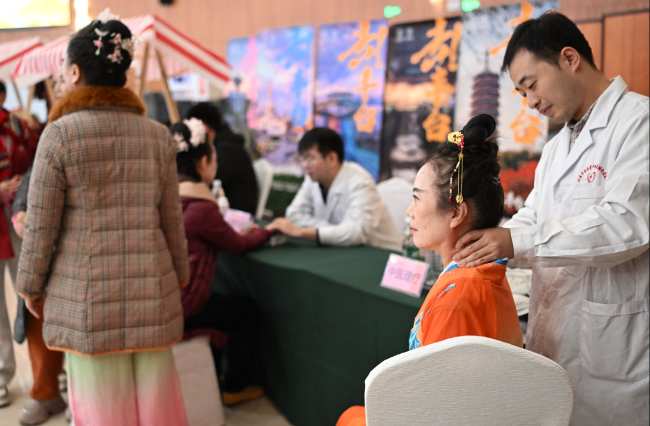 中国中医科学院中医基础理论研究所的杜松博士以“重阳节与中医院养生”为主题,为老年朋友们带来了一场实用的中医健康知识讲座。她结合临床实例,深入浅出地讲解中医保健方法,让老年朋友们了解如何根据自身体质进行饮食调养、运动锻炼和情志调节。活动特别增设的中医问诊和健康理疗体验环节,让老年朋友们享受了一对一的贴心服务,切实感受到了中医养生的魅力。