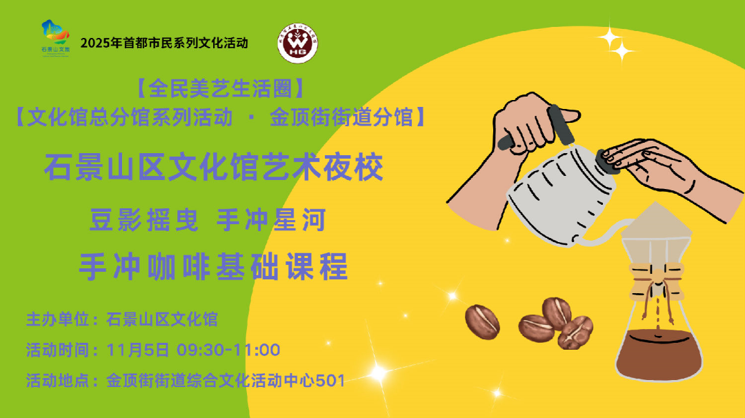 石景山区文化馆为丰富群众文化生活,公益课程内容丰富多元化,推出咖啡文化体验活动。邀请您探索手冲咖啡的奇妙旅程,从指尖到味蕾的觉醒。每一克豆子的研磨藏着风土的秘密,水温与时间的碰撞唤醒花果、坚果或巧克力的芬芳。手冲是咖啡的实验室,也是心灵的慢时光,让日常的一杯成为亲手创造的艺术。本节课学习冲泡咖啡的手法。