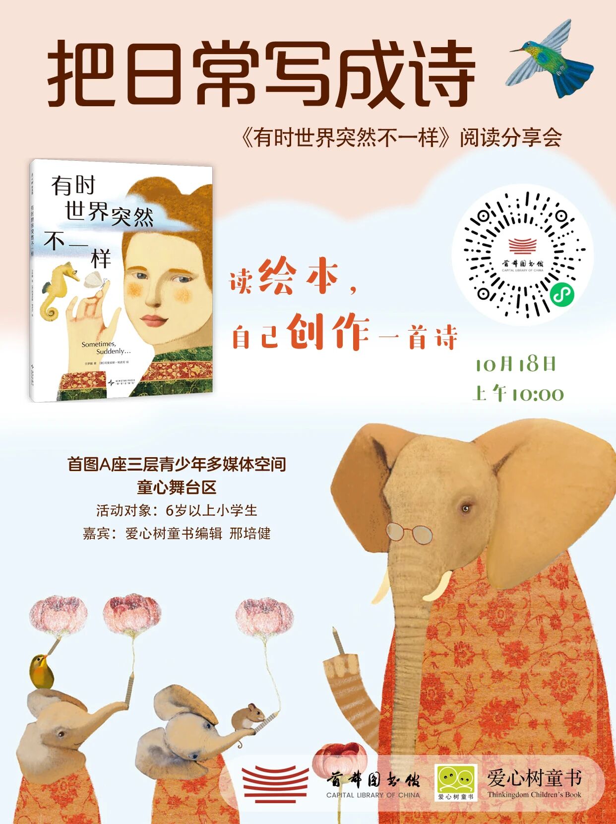本次活动,老师将带领孩子们通过阅读这本书了解诗歌的特点,学习从日常生活中寻找灵感,并模仿书中诗歌尝试创作,体验写作的成就感和快乐。