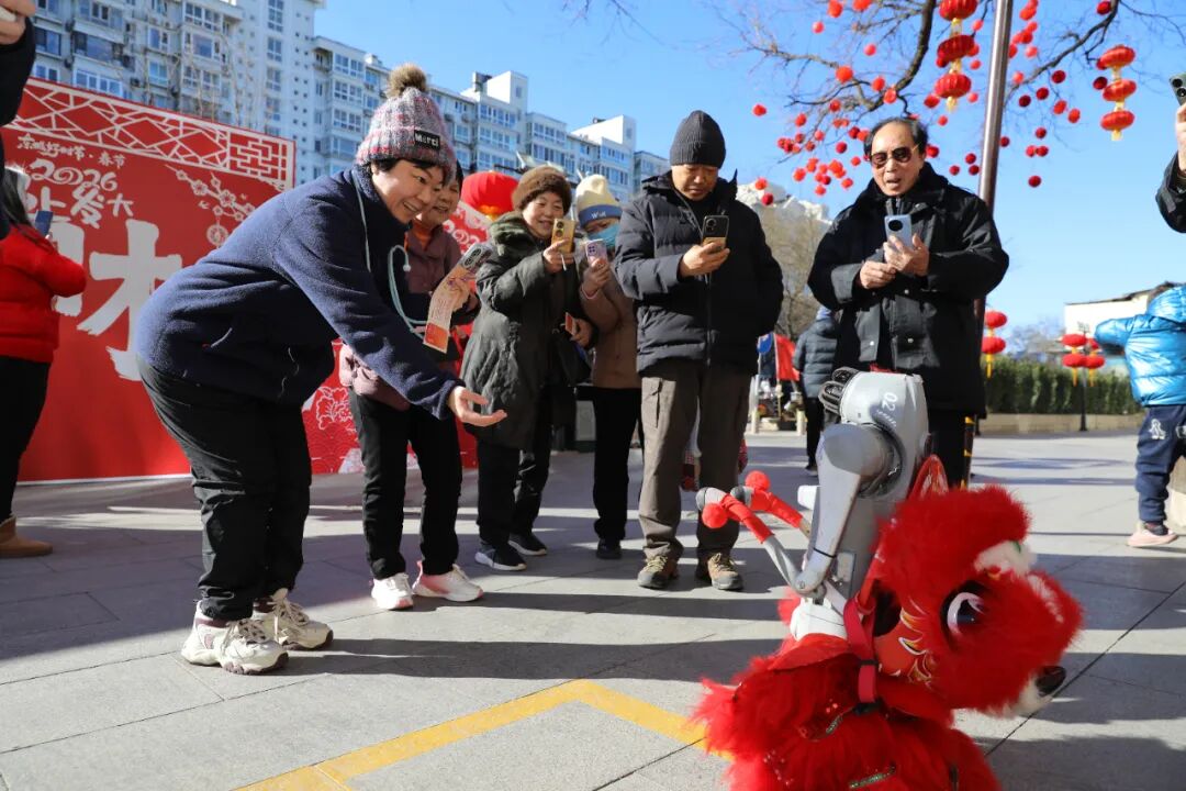 开幕式上,由4只机器狗演绎的醒狮表演,实现了传统民俗与前沿科技的创意碰撞。活动期间,互动机器人成为市民们追捧的“科技明星”,通过迎宾、巡游、合影、舞蹈等常态化互动,不仅提升了活动的趣味性与吸引力,更体现了活动主动运用新技术降低文化参与门槛,扩大服务覆盖面,使文化惠民更加智慧、亲切、可感。科技赋能与文化场景的有机结合,为传统节庆活动注入了现代活力,让文化服务更具时代质感与亲民温度。
