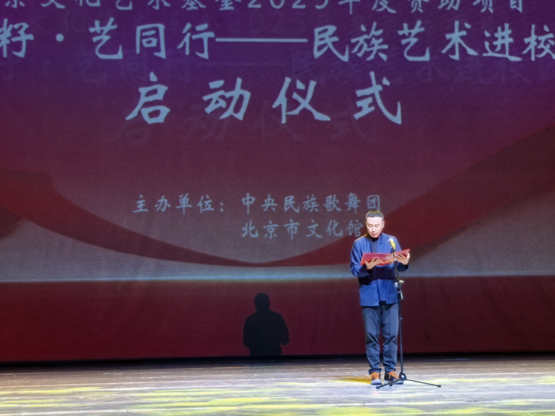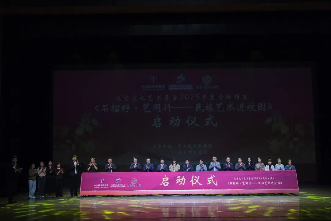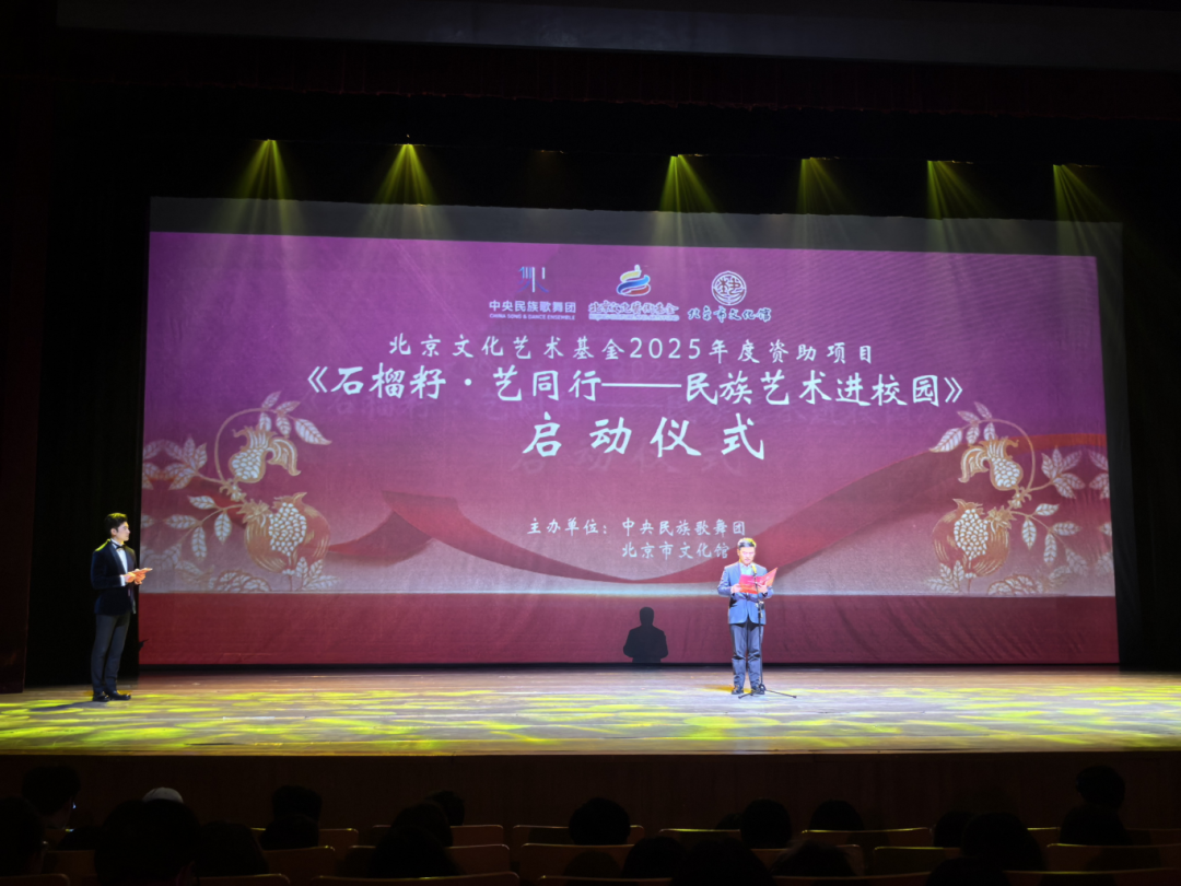 4月25日下午,北京文化艺术基金2025年度资助项目“石榴籽·艺同行——民族艺术进校园”启动仪式,在中央民族歌舞团民族剧院成功举办。活动由中央民族歌舞团与北京市文化馆联合主办,依托馆团深度协作、馆校双向联动模式,集聚国家级、市级优质民族文艺资源,助力首都校园美育提质升级,推动民族团结教育与全民艺术普及深度融合。